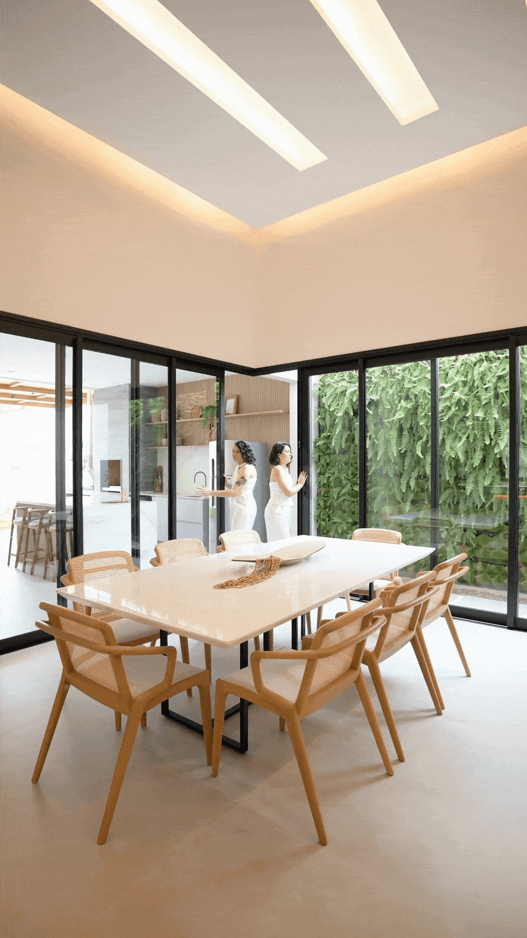 Em meio à cidade, um terreno generoso se transforma em refúgio, descanso e celebração. A Casa Oásis é um lugar para receber, acolher e viver momentos ao redor da mesa, da piscina e da natureza. Mais do que um espaço de lazer, é um lugar pensado para reunir filhos, netos, parentes e amigos com conforto e beleza em datas especiais, e também nos dias comuns.